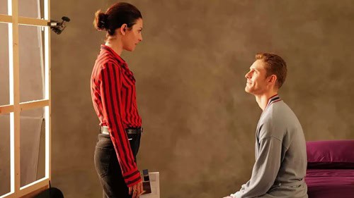Aunque, puestos a detenernos en una de las criaturas de Amarga Navidad, hagámoslo en Bonifacio (Beau), cuya vulnerabilidad, ingenuidad y carnalidad fluyen gracias a la encomiable espontaneidad de Patrick Criado. El arco narrativo que construye Almodóvar con este personaje, que parece ajeno al universo codificado del cineasta, permite advertir los desvíos y sacrificios de todo proceso creativo. Beau protagoniza una de las escenas más vitalistas de la película —ese striptease rememorado por Elsa en una despedida de soltera, que desencadena el posterior flirteo entre ambos—, es testigo de dos encuentros con estrellas invitadas (Carmen Machi y Rossy de Palma) que recuperan viejo el sentido del humor desinhibido del director manchego y comparte con el personaje de Lennie un momento traumático: el conocimiento de la muerte de su madre en pleno rodaje de un anuncio. Sin embargo, Beau desaparece abruptamente en la segunda mitad de Amarga Navidad, al convertirse de facto en un compañero sentimental desechable para Elsa cuando esta recupera la inspiración creativa. Su ausencia es dolorosa —¡qué momento, el de la fugaz conversación telefónica en la que él toma conciencia de que sus deseos no importan, pues no es más que un actor secundario en la vida creada por su pareja-directora!— y sabotea el desarrollo narrativo de la propia película, pero resulta coherente con la idea que apuntábamos al principio de estas líneas: Amarga Navidad no es exactamente una tragicomedia almodovariana, sino más bien la crónica del fracaso de un cineasta al intentar armar un filme de estas características. A nosotros, en tanto que espectadores, nos corresponde dilucidar si lo que hemos visto nos estimula lo suficiente o si, en cambio, exigimos una reescritura del guion, como la que empieza a construir, en estado de arrebato y al son de Alberto Iglesias, el personaje de Sbaraglia justo antes de los créditos finales…